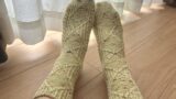 こちらはつま先から編むパターンで、交差模様の繰り返しとなっていました。模様編みの部分も覚えやすく、モバ編みにも適していて移動中の待ち時間にも編み進めることができました。踵もシンプルな作りで靴下編み初心者の方でも編みやすいのではないかと思います。