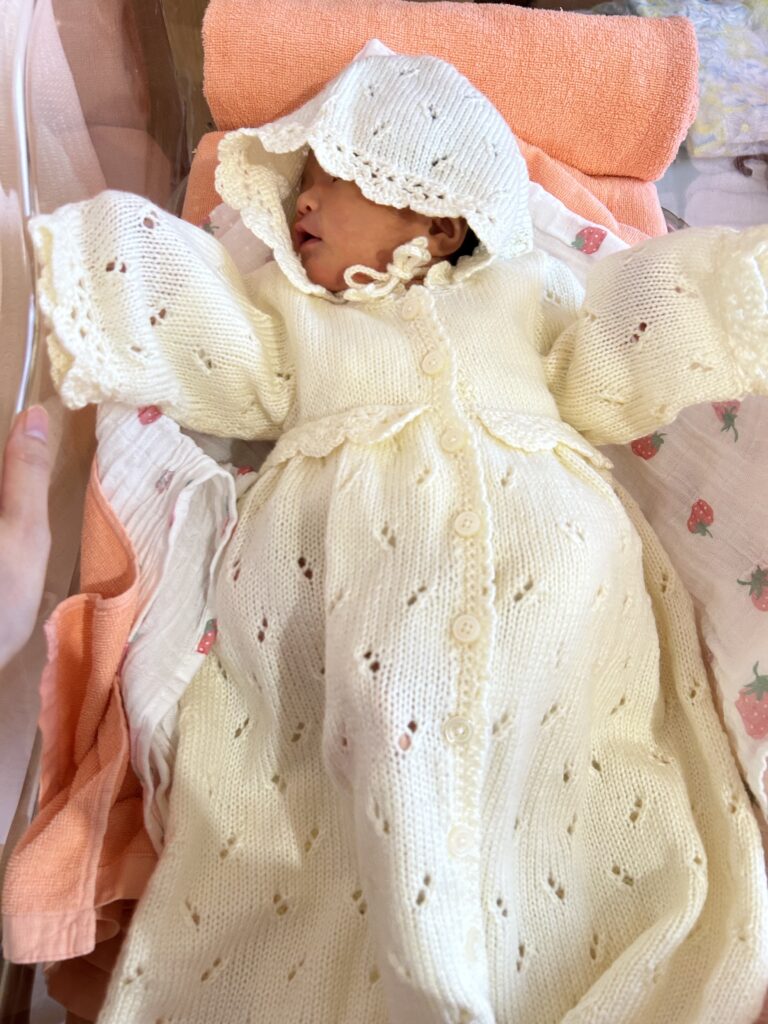 実際に娘が着た様子はこちらです。産後の退院時です。