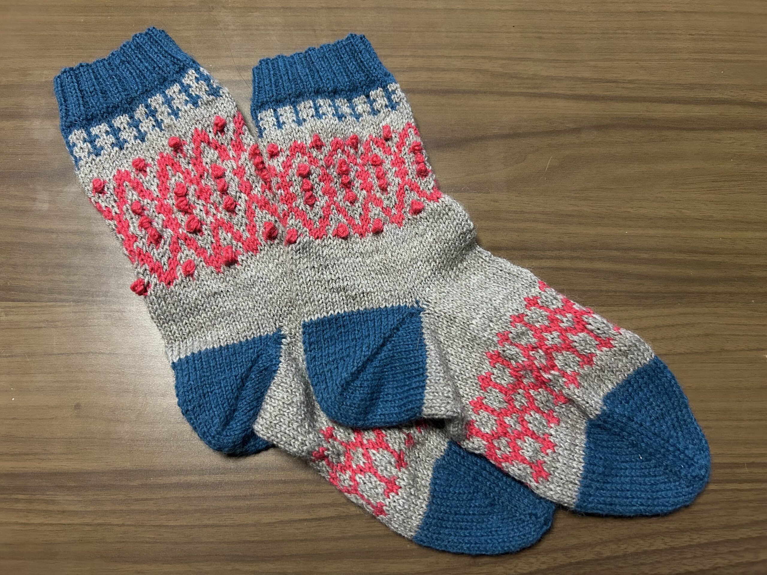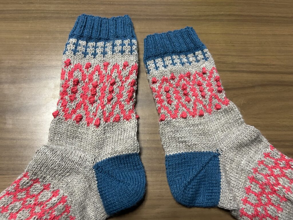糸の渡し具合でこんなに差が出るのだと勉強になった!せっかく頑張ったし、記録として解かずに履きます!笑